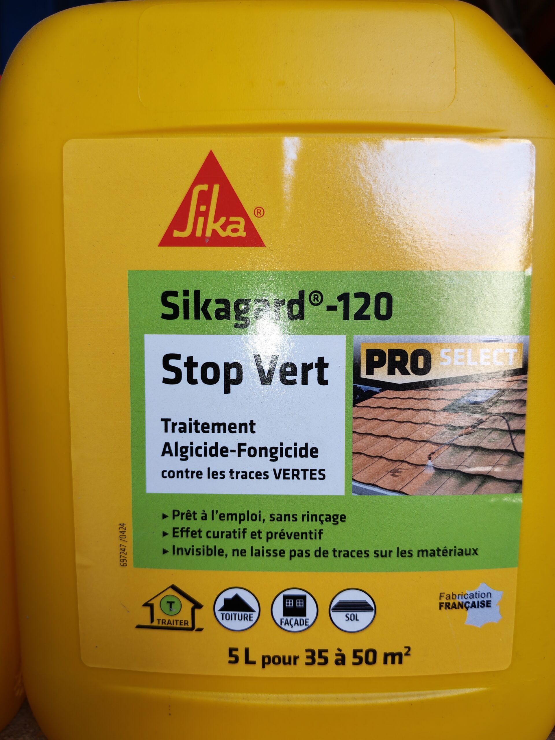 Le Sikagard-120 Stop Vert est un traitement liquide professionnel conçu pour prévenir et éliminer les dépôts verts, mousses et algues sur les surfaces extérieures. Disponible en bidons de 20 L et 5 L, il est particulièrement adapté pour les façades, toitures, dallages, terrasses et autres surfaces exposées à l’humidité et au développement de micro-organismes.